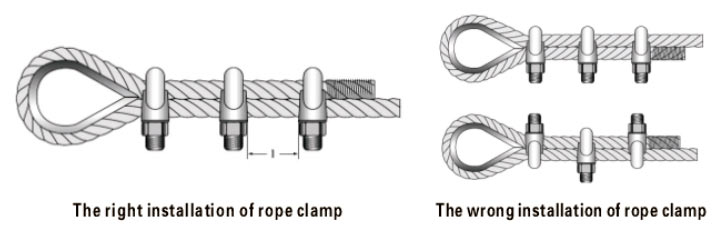 Sizing: Iron wire is recommended to be used lo seize the wire rope, at the location whore the wire rope will be cut, put one end of the iron wire along the wire rope axis, and leave a length of 4 times diameter of wire rope; begin to wind the iron wire on the wire rope closely from the other side of iron wire at the cutting position, the winding length should be about 3 times of rope diameter, then strain the ends of the iron and screw it closely, the screw length should equals the diameter of the wire rope then the screwed section should be set between the groove of the strands. Rope clamp: Steel wire ropes are bended to a ring, fixed with wire, and then using double-saddle bolts clamping. Fuse end of wire rope: using special electric heating equipment of steel wire rope, under half melting state, through the chunk rotating wire rope and then the rope of all steel wire welding together forming conical end of wire rope.